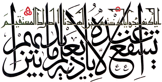 “Hüvellâhü’llezî Lâ ilâhe illâ hû, Er-Rahmân, Er-Rahîm, El-Melik, El-Kuddûs, Es-Selâm”