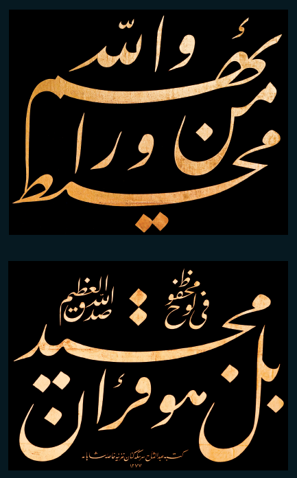 “Vallâhü min verâ’ihim muhît, bel hüve kur’ânün mecîd, fî levhin mahfûz”